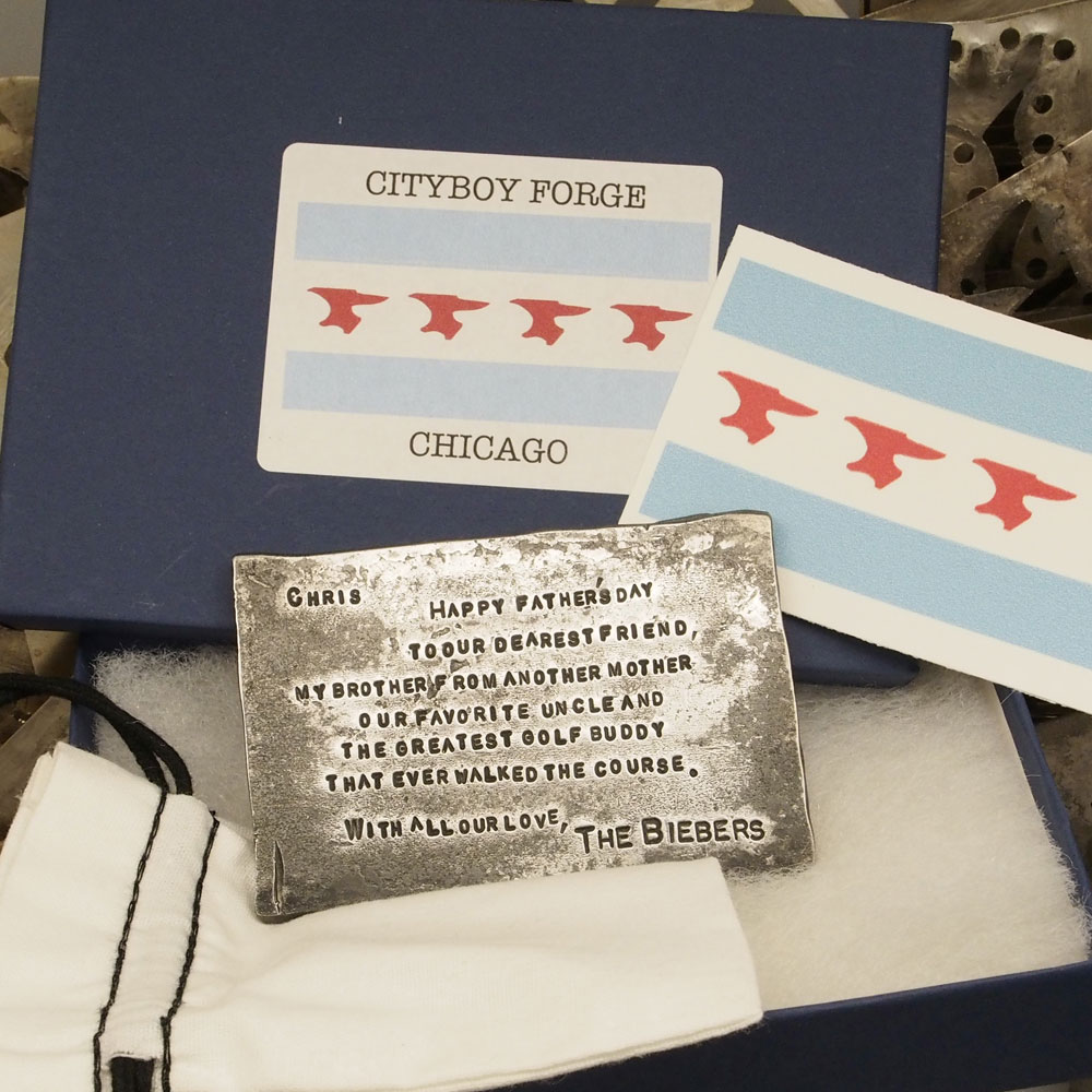 Your $100 cost, is a deposit* that’s applied to the cost of the buckle we design with your giftee. Or it can be applied to the price an in-stock buckle if your giftee so chooses.
